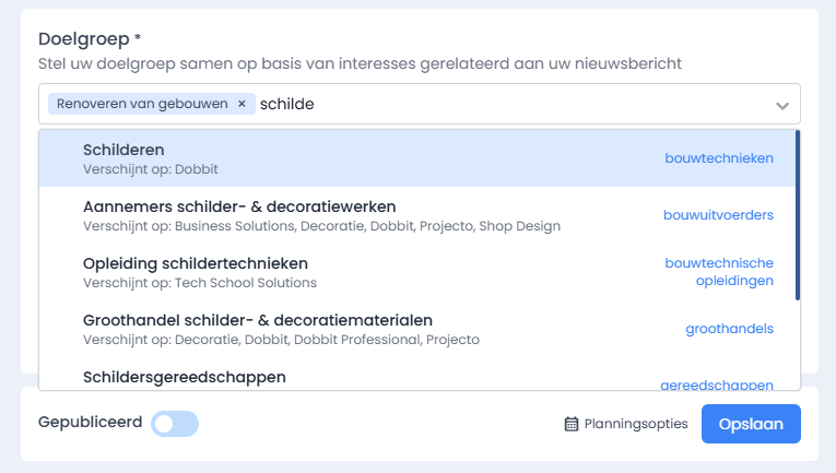 Maak uw nieuws bericht aan. selecteer de intresses en publiceer gratis op onze websites